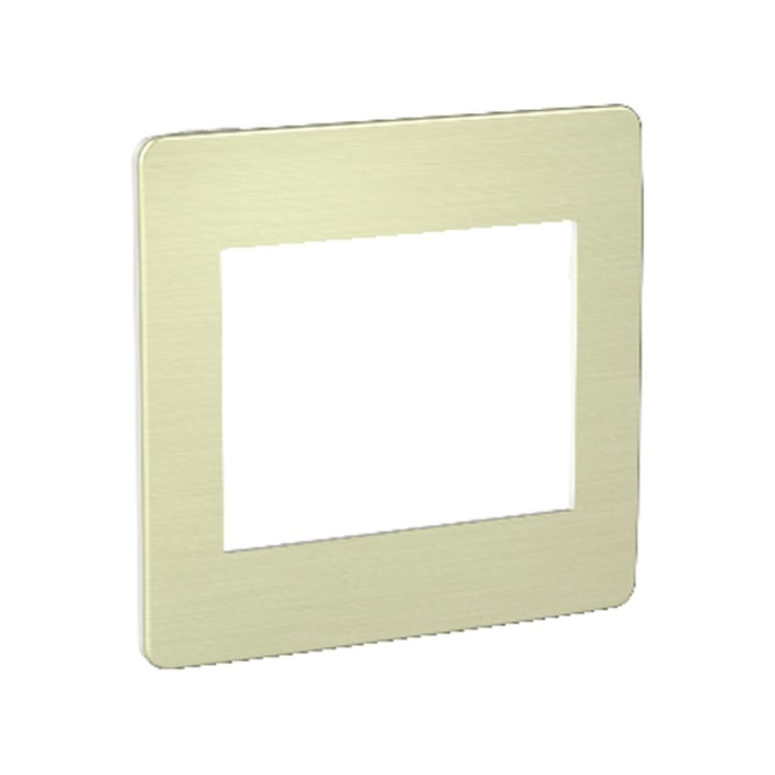 DescriçãoA Placa 4x4 6 Postos Orion Aurora Gold Schneider traz um design moderno e inovador, proporcionando praticidade, versatilidade e rapidez no momento das instalações, sem abrir mão da beleza. Produzida em termoplástico e ABS-UV (acrilonitrilo-butadieno-estireno): a placa intermediária é adequada para finalizar o acabamento da distribuição de energia elétrica em instalações residenciais, prediais e comerciais, além de, em caso de emergência é capaz de inibir a propagação de chamas. Sua limpeza pode ser feita apenas com um pano levemente umedecido e sabão neutro. Vale ressaltar que não acompanha suporte. A Schneider Electric é um grupo multinacional francês, especializada em produtos e serviços para distribuição elétrica. Presente há 60 anos no Brasil a marca proporciona os mais elevados níveis tecnológicos, de acordo com as principais normas de qualidade e segurança nacionais e internacionais.Informações técnicas: - Marca: Schneider Electric - Modelo: Orion - Cor: Aurora Gold- Altura: 13cm- Largura: 0,83cm- Profundidade: 20cm