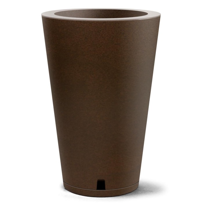 Informações Complementares e TécnicasPossui formato cônico e altura aproximada de 44,5 cm, proporcionando presença decorativa marcante em ambientes internos e externos. Produzido em polietileno, material leve e resistente, apresenta boa durabilidade e facilidade de manuseio. O modelo é fornecido com prato, auxiliando no controle da água durante a irrigação e protegendo superfícies onde o vaso é instalado.